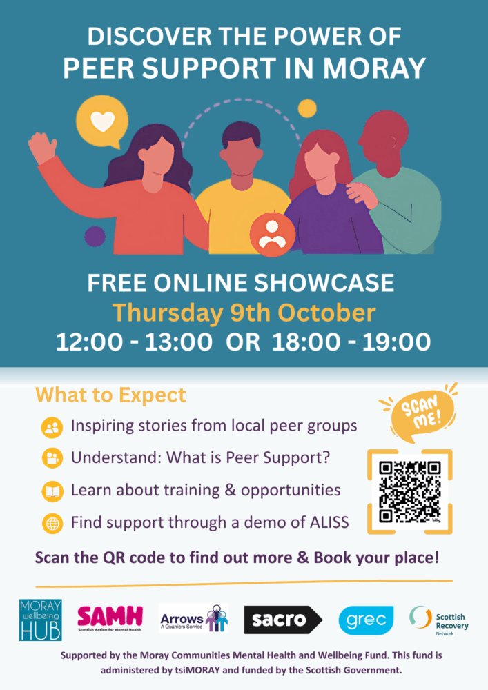 Whether you’re already part of a peer support group, curious about getting involved, or simply want to learn more, this event is for you. Come along, connect, and be part of a growing movement for wellbeing in Moray.