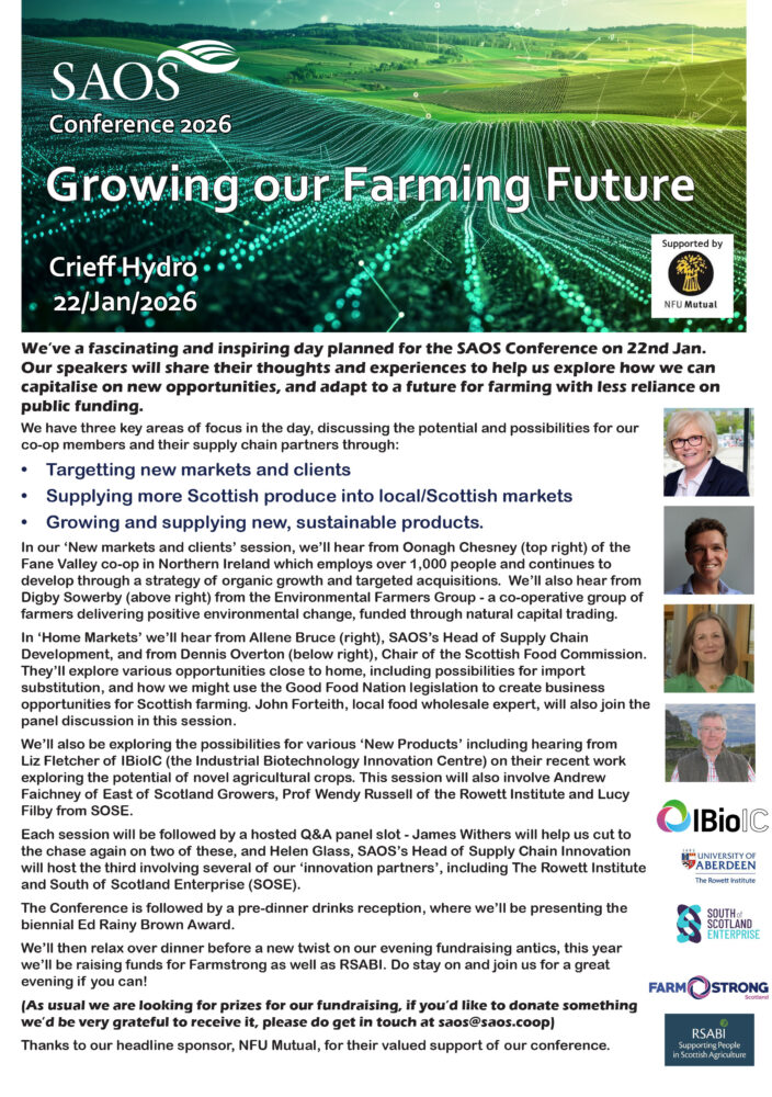 For ticket pricing visit the booking link; SAOS Conference 2026 – Growing our Farming Future