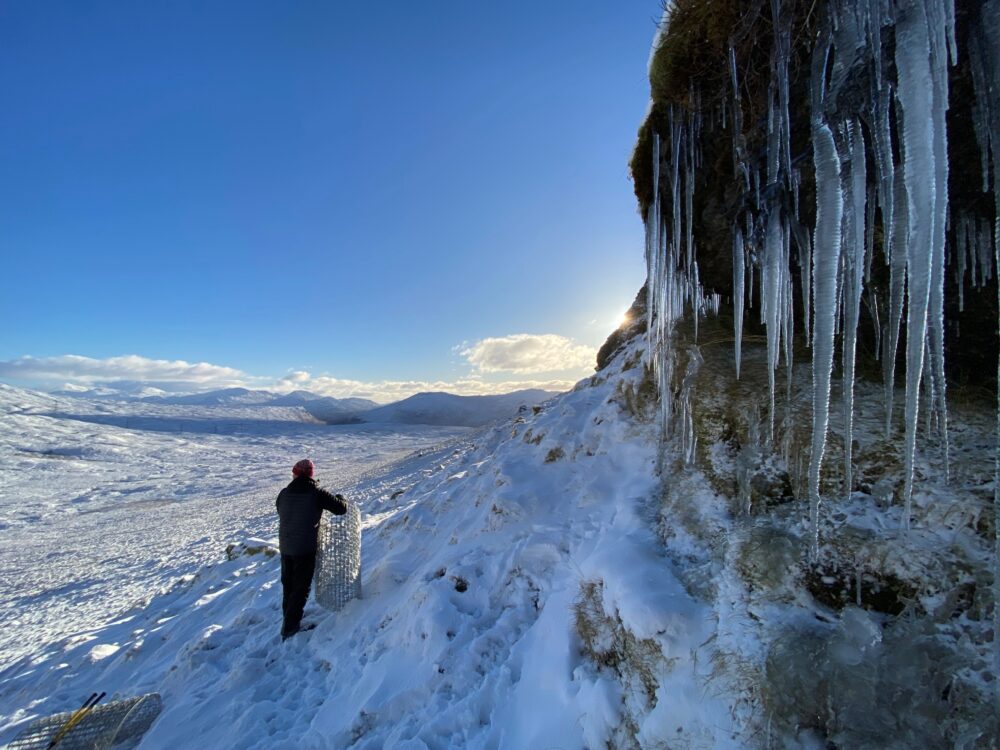 The 953-hectare Ben Lui Nature Reserve is owned by NatureScot and staff have been battling snow and ice to prepare an area of cliff and crag for planting, ready to receive the saplings in the spring.